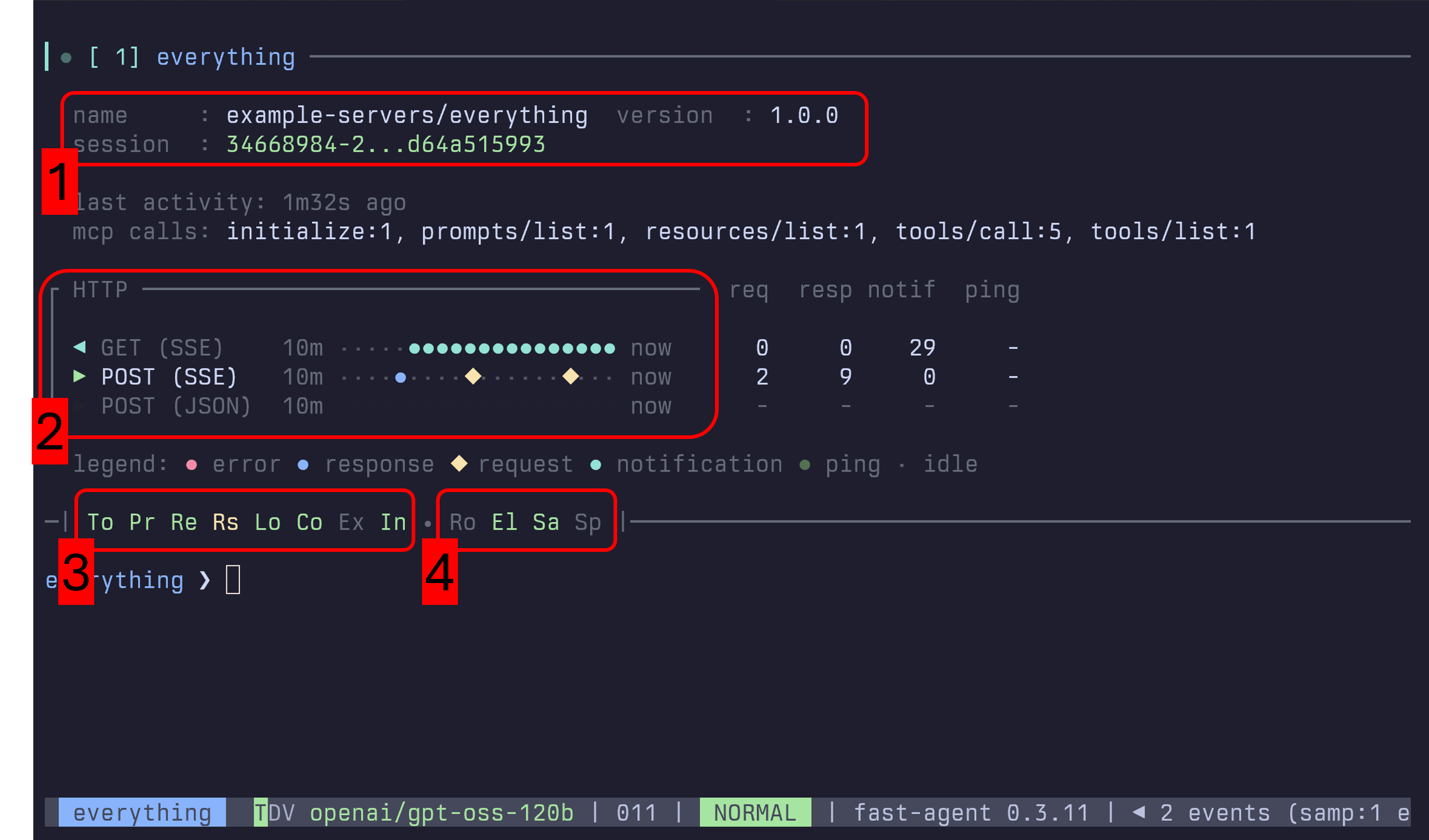 Detailed information about the MCP Server connection can be displayed with the /mcp